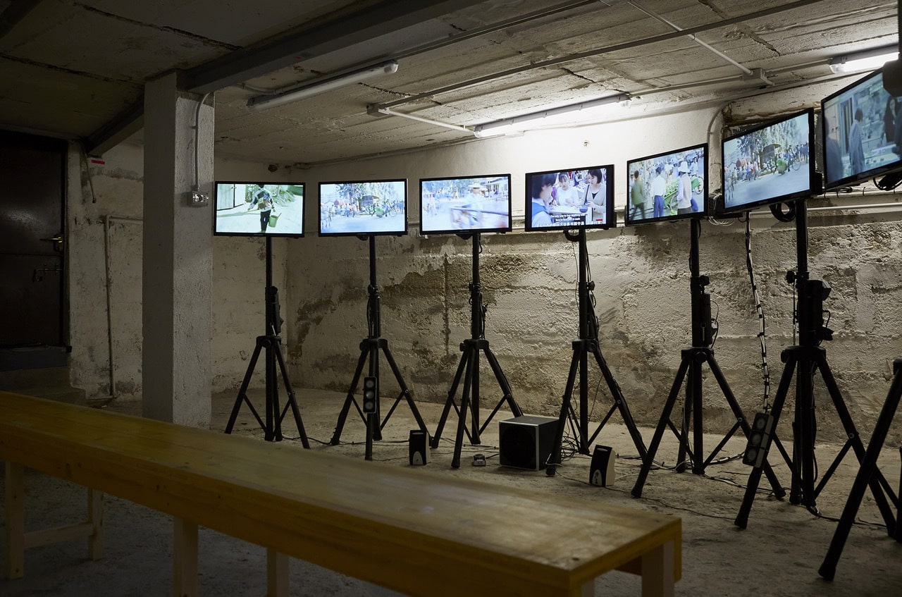 A good example is the video Double 11 (2018), which Wong made with Javaherian. In principal, the video loop has no beginning and no end, and shows images on seven different screens. It must be possible to come into the exhibition room at any time and follow the story without too much difficulty, just as, on the internet, you also go from one news broadcast or YouTube video to another.