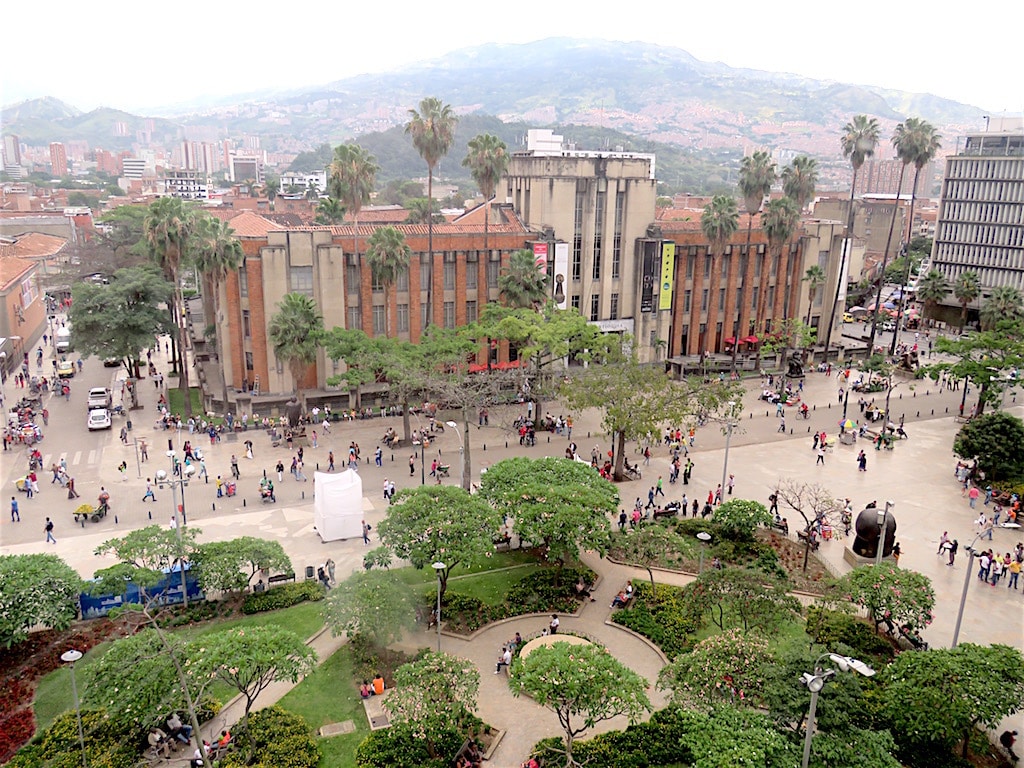 View of Plaza Botero and Museo de Antioquia from the fourth floor of the Palacio de la Cultura Rafael Uribe Uribe© Medellín Guru