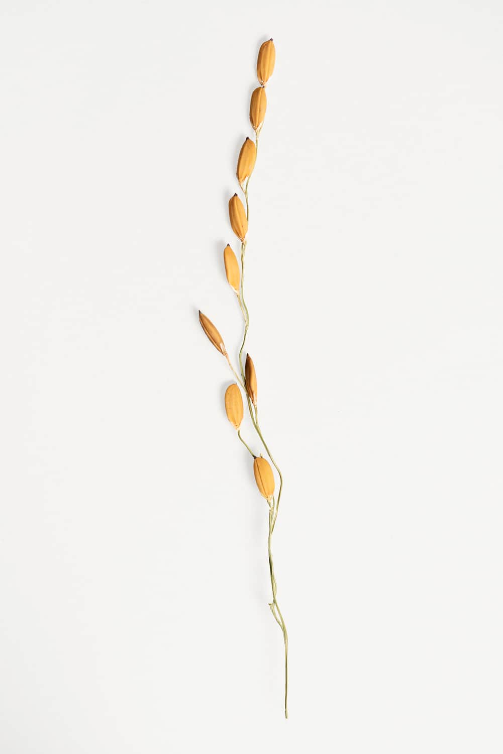 Rice stalk Ma Sape/ Sapali, 21st century. The rice variety is descended from rice seeds that possibly ended up in Suriname via a slave ship from Africa. Sapali braided the stalk of rice into her hair when she escaped from a plantation.© Tinde van Andel, Naturalis Biodiversity Center, Leiden, Photo: Marlies Lageweg