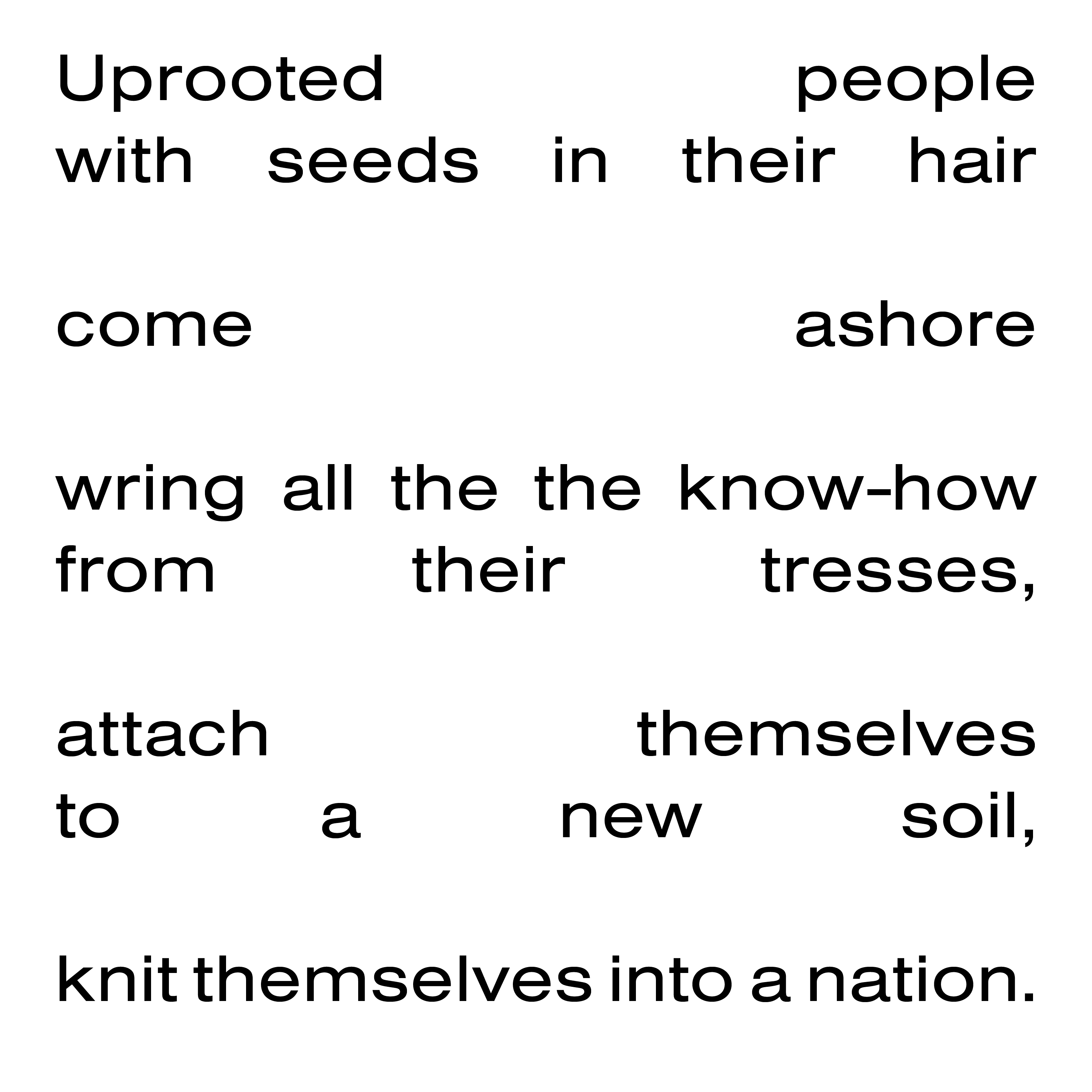 Eighteen young Flemish and Dutch authors bring an artefact to life from the Slavery exhibition at the Rijksmuseum in Amsterdam. Betül Sefika was inspired for her visual poem by a rice stalk of the Ma Sapi variety, which is directly descended from rice seeds that were smuggled from Africa to Suriname by the enslaved woman Sapali.