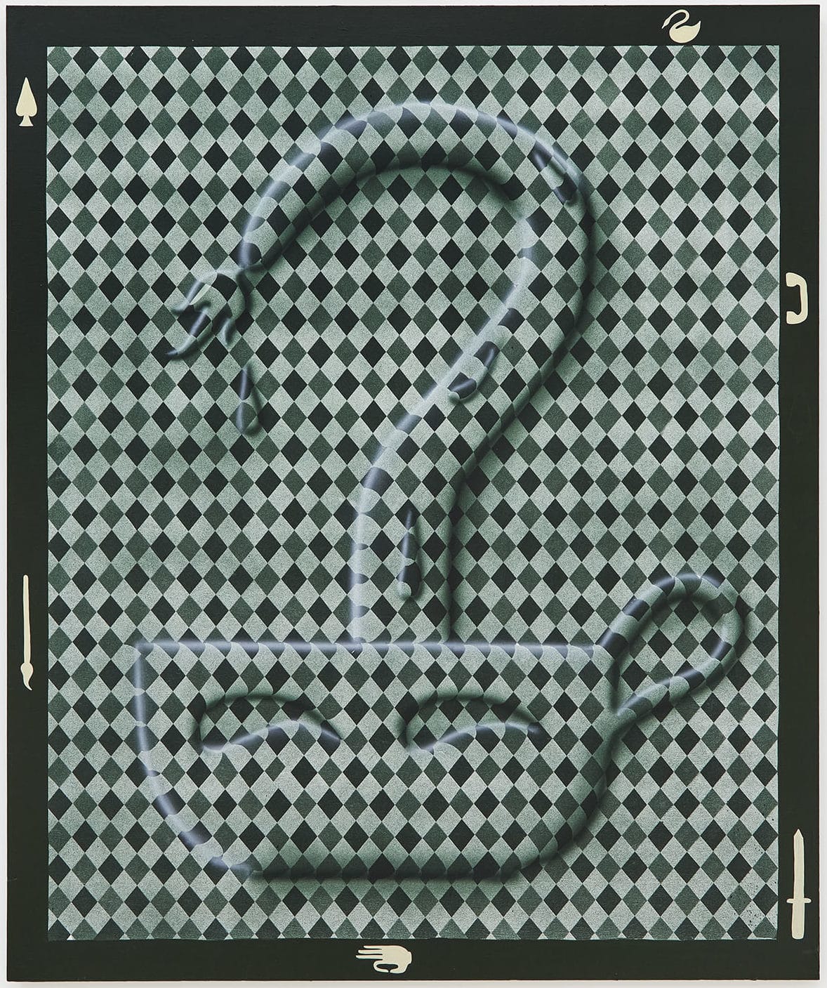 Charline Tyberghein (Antwerp, b.1993) paints enigmatic pictograms, like cards in a surrealist game whose rules remain obscure. With their trompe l’oeil effects, the results are visually striking, but also a little unsettling.