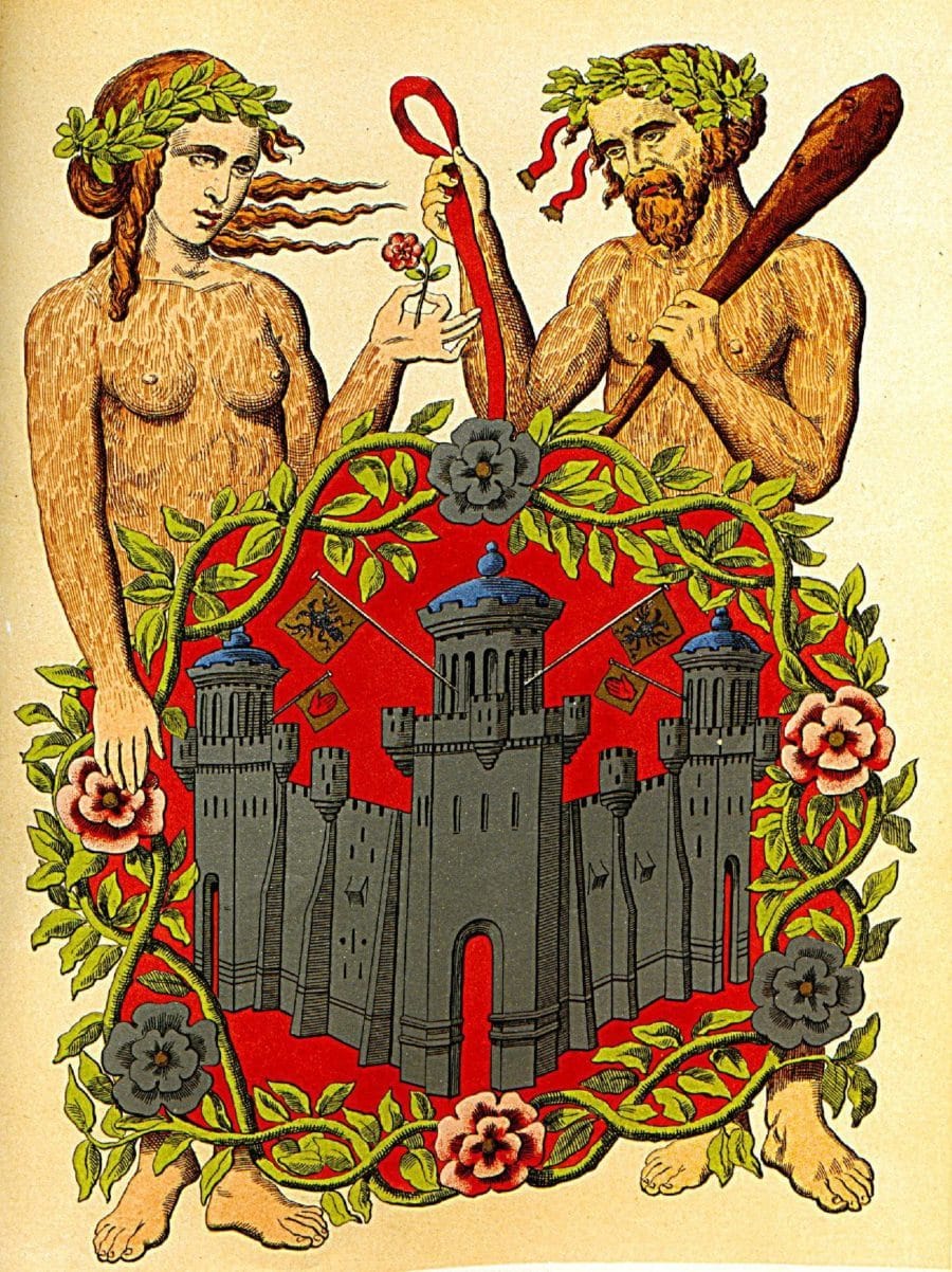 Coat of arms of the city of Antwerp with a wild woman and a wild manHe sees the foreign woman thrown into his lap as a divine answer to his call for love: united, they unmistakably form a reflection of the wild couple that flank the Antwerp coat of arms.
