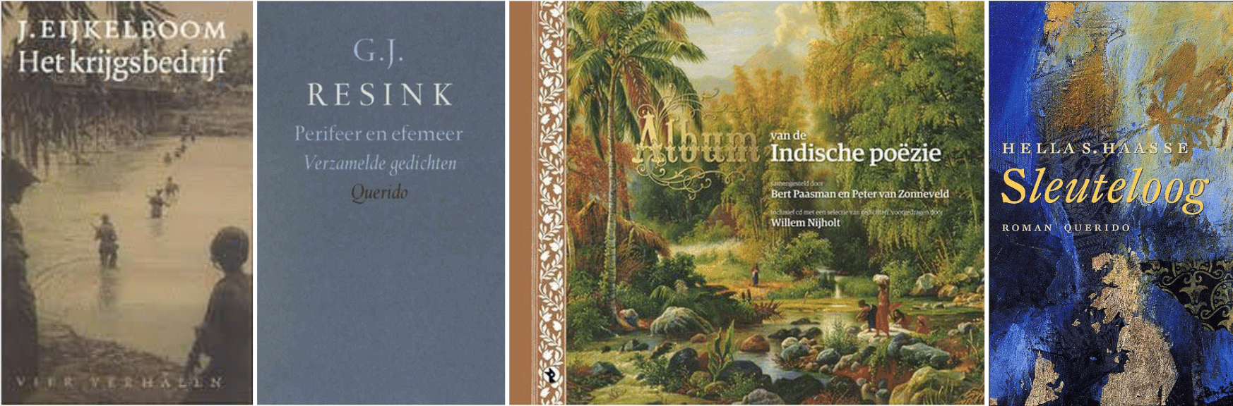 The year 2000 opens the series with the story collection Het krijgsbedrijf (Waging War) by Jan Eijkelboom, five exceptional stories from his time as a soldier in Java during the police actions. Next, in 2001, came G.J. Resink, one of our best Indies poets, with his poems collected in Perifeer en efemeer (Peripheral and Ephemeral), followed in 2014 by the great Album van de Indische poëzie (Album of Indies Poetry) compiled by Bert Paasman and Peter van Zonneveld. In 2002, over fifty years after her famous novella Oeroeg (1948; The Black Lake, 2012), Hella Haasse publishes her last Indies novel, Sleuteloog (Eye of the Key) in which she looks back at her youth and her friends in Batavia, including a scathing literary portrait of Rob Nieuwenhuys.