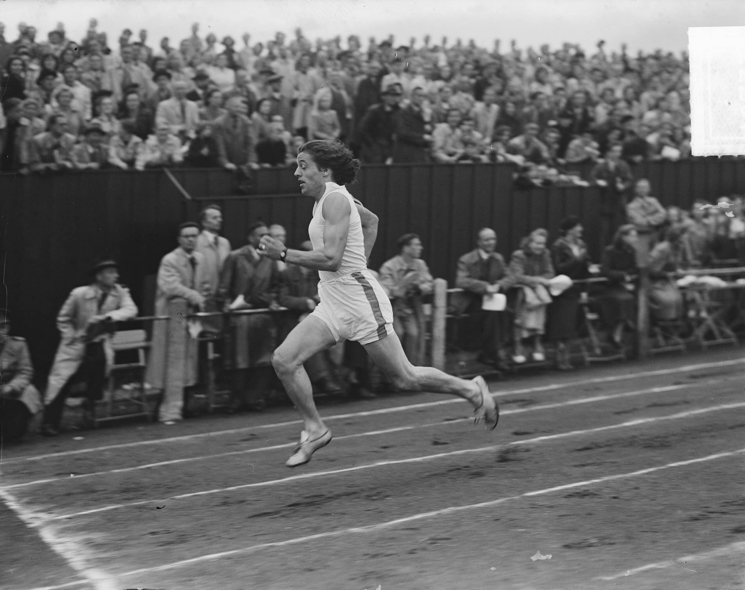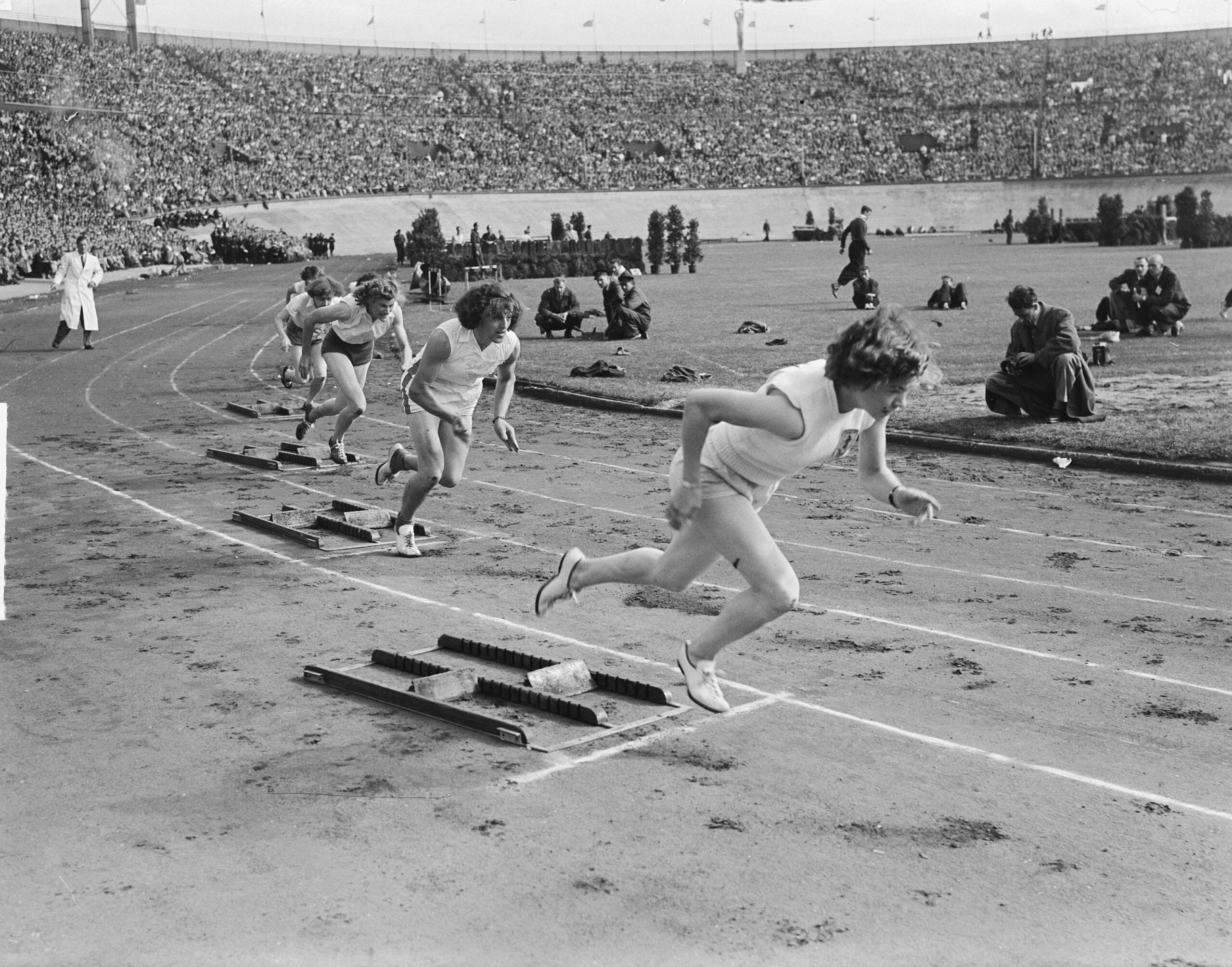 Out of the starting blocks for a 200 metres race, 18 June 1950. Foekje Dillema is the second from the right.© Dutch National Archives - CCO / Photo by J.D. Noske - Anefo