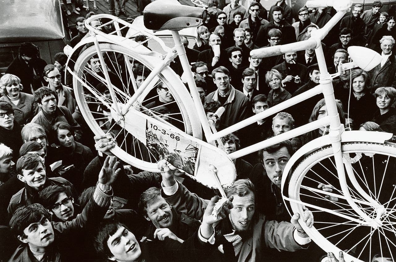 Provo's with a white bikeStill from the movie 'Rebellious City: Provo in Amsterdam'