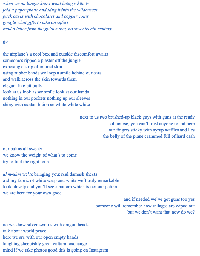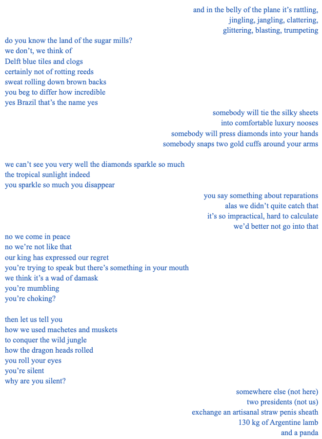 Eighteen young Flemish and Dutch authors bring an artefact to life from the Slavery exhibition at the Rijksmuseum in Amsterdam. Marie Borremans wrote a poem inspired by a letter from Pieter Mortamer, commander in Luanda, addressed to Johan Maurits, the then governor-general of Dutch Brazil. In this letter, written on 31 October 1642, Mortamer advises on high-level diplomatic negotiations with the Congolese king.