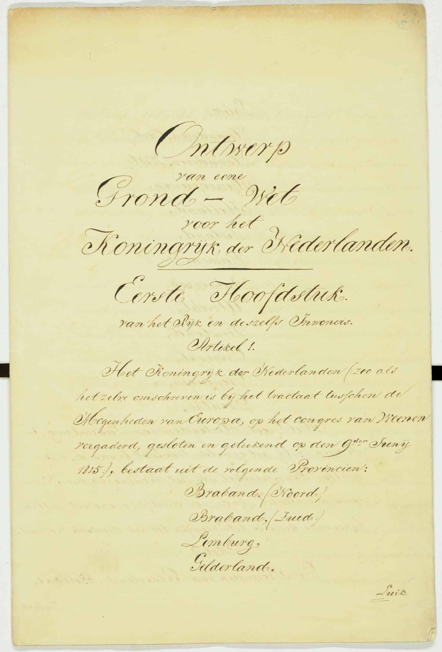 Draft of the 1815 Constitution of the Kingdom of the Netherlands.© National Archives of the Netherlands