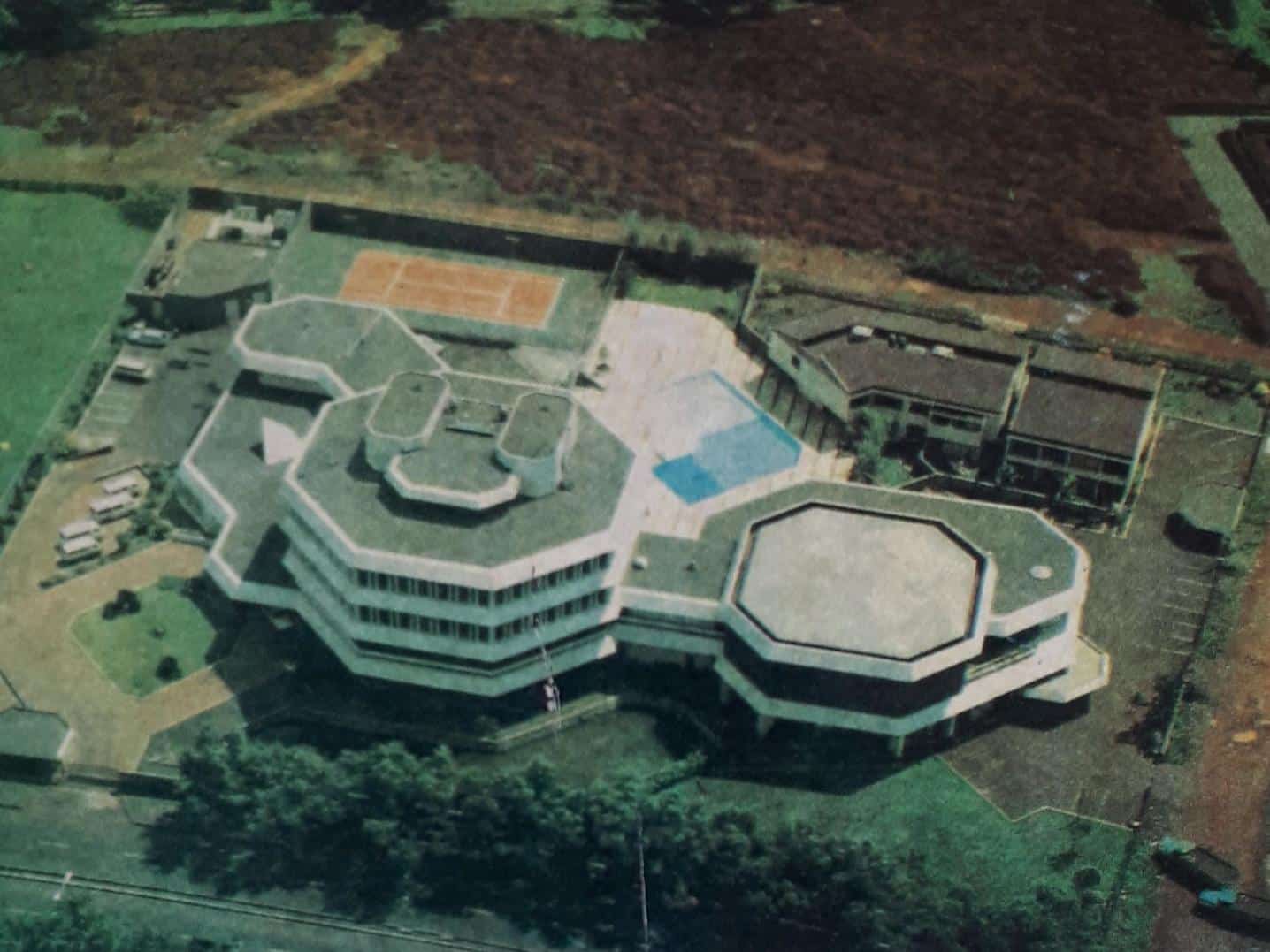 The design of the new compound was made by Sangkuriang, an Indonesian company. The complex consisted of a “Consular department, a four-storey chancery and a two-storey ‘Erasmus house’, a Dutch cultural centre containing a library, classrooms, an exposition area and a multipurpose hall for 300 seats. Four houses for staff, a swimming pool, a technical building and a tennis court are situated at the rear”, according to a Decoriënt information sheet from the Erasmus Huis archive. The chancery and the Erasmus Huis both received distinctive octagonal shapes and had a thoroughly modern, almost futurist design: a definite break from its previous colonial accommodation.