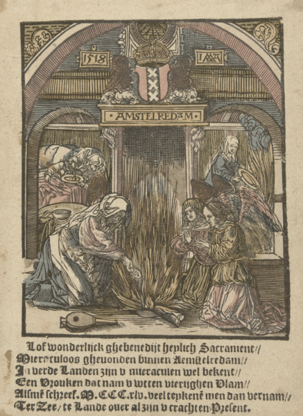 The (Eucharistic) Miracle of Amsterdam. Woodcut made in 1518 by Jacob Cornelisz (1470-1533).© Wikimedia Commons