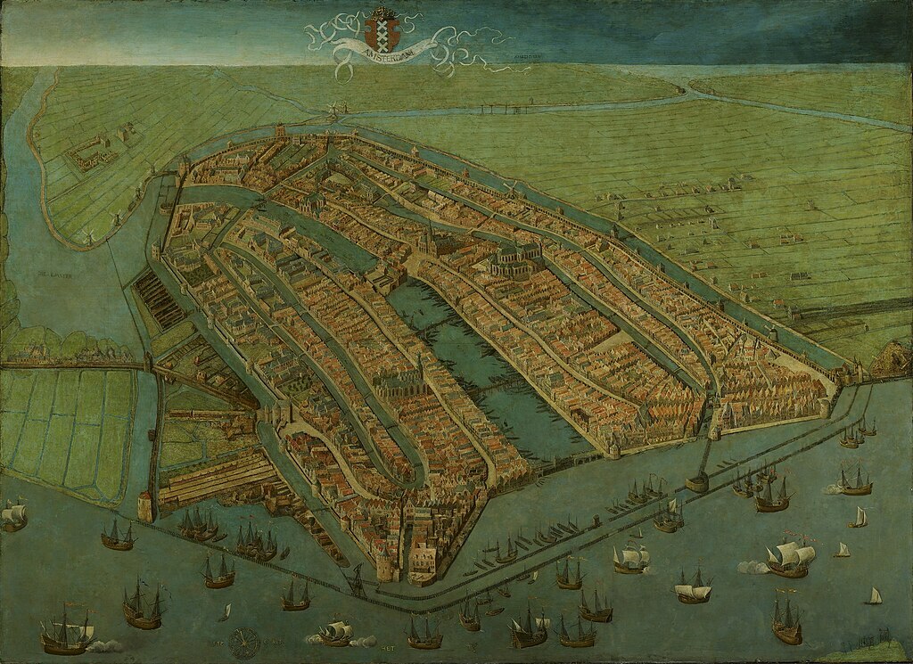 Oldest surviving map of Amsterdam (1538) showing the city's finished medieval walls, towers and gatesHow the medieval town looked