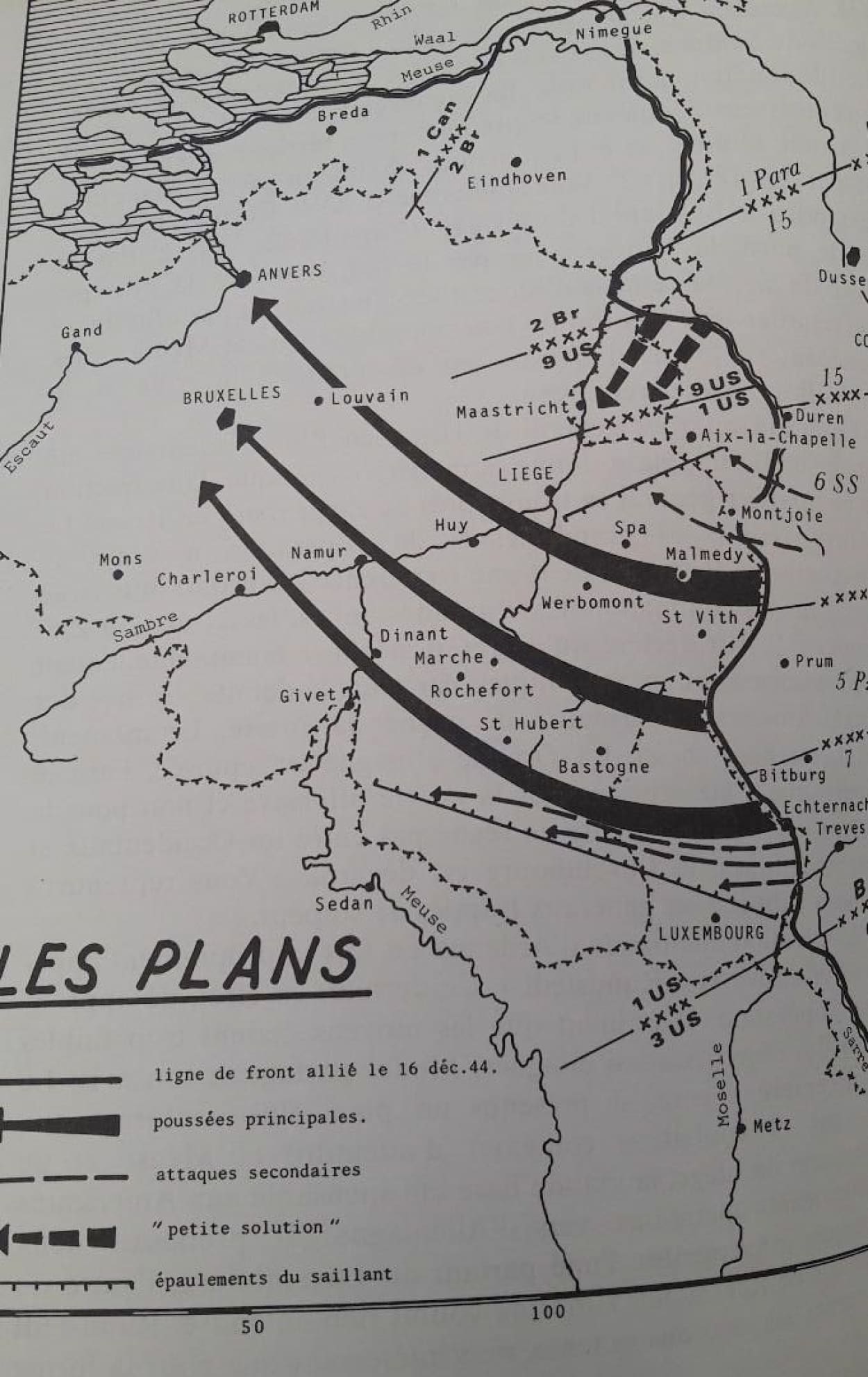 This German plan has been given different names: the Ardennes offensive, the Battle of the Bulge, and sometimes it is mistakenly called the Von Rundstedt offensive. Field Marshal G. Von Rundstedt was the commander of the Western Front. He realised that Hitler’s plan was insane, but he didn’t dare contradict the Führer. The Germans called the plan ‘Wacht am Rhein’ (the Watch on the Rhine), with the intention of creating the impression that it was more of a defensive plan designed to stop the advancing Allies at the Rhine. A strict timetable was drawn up for the attack: 16 December: D-day; 18 December: the Maas is reached; 19 December: the Maas is crossed; 23 December: Antwerp is captured.