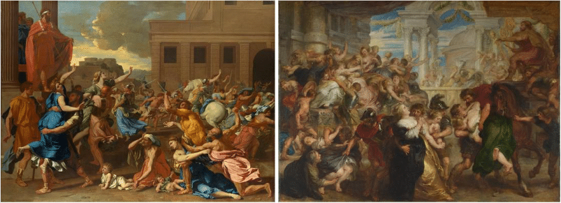 Nicolas Poussin, The Abduction of the Sabine Women, 1633–34 / Peter Paul Rubens, The Abduction of the Sabine Women, 1635–40© Wikimedia/The Metropolitan Museum of Art, New York / © Wikimedia/The National Gallery, London