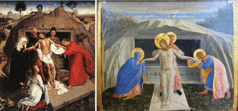 Rogier van der Weyden, The Entombment of Christ, ca. 1463–64 / Fra Angelico, The Entombment of Christ, ca. 1440© Wikimedia / Gallerie degli Uffizi, Florence / © Wikimedia / Alte Pinakothek, München