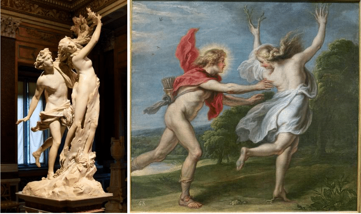 Gianlorenzo Bernini. Apollo and Daphne, 1622–25 / Theodoor van Thulden. Apollo and Daphne, 1636–38© Wikimedia / Galleria Borghese, Rome / ©Wikimedia / Museo Nacional del Prado, Madrid