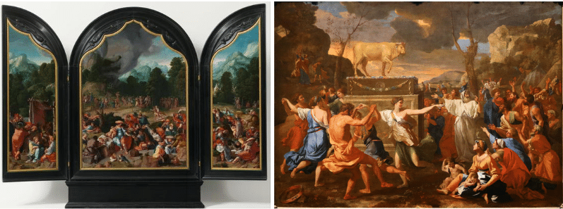 Lucas van Leyden, Worship of the Golden Calf, ca. 1530 / Nicolas Poussin, Adoration of the Golden Calf, 1633© Rijksmuseum, Amsterdam / © National Gallery, Londen