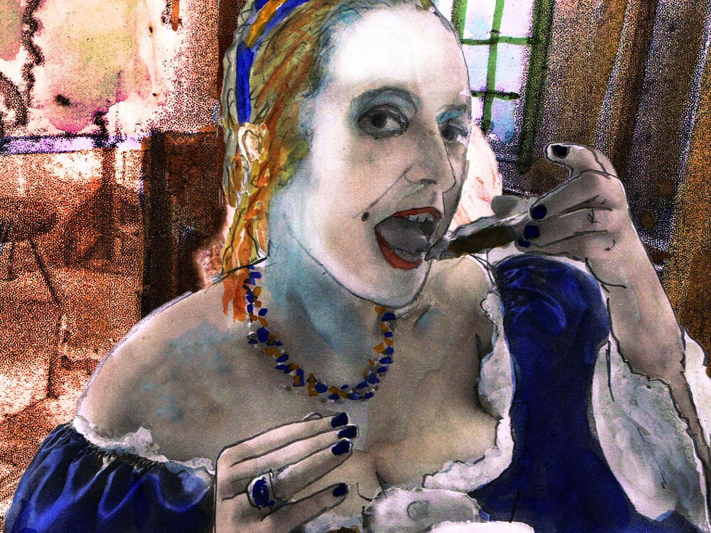Maritgen Lisette from 'Angels of Amsterdam' by Anna Abrahams and Avinash Changa. Illustration: Coos DietersIn 15 to 30 minutes you meet four young, fearless women who, each for their own reason, seek solace in the cafe. Maritgen Jans goes through life as David the seaman; Juliana dances and fights to redeem herself from the man who considers her his own; Elsje Christiaens is on the run from poverty and Soete Cut (Pussy Sweet) embraces her sexuality as a prostitute. These four true stories demonstrate how issues we sometimes deem contemporary – LGBT, Black Lives Matter, ‘happiness seekers’, sex work – are, in fact, timeless, and far from resolved.