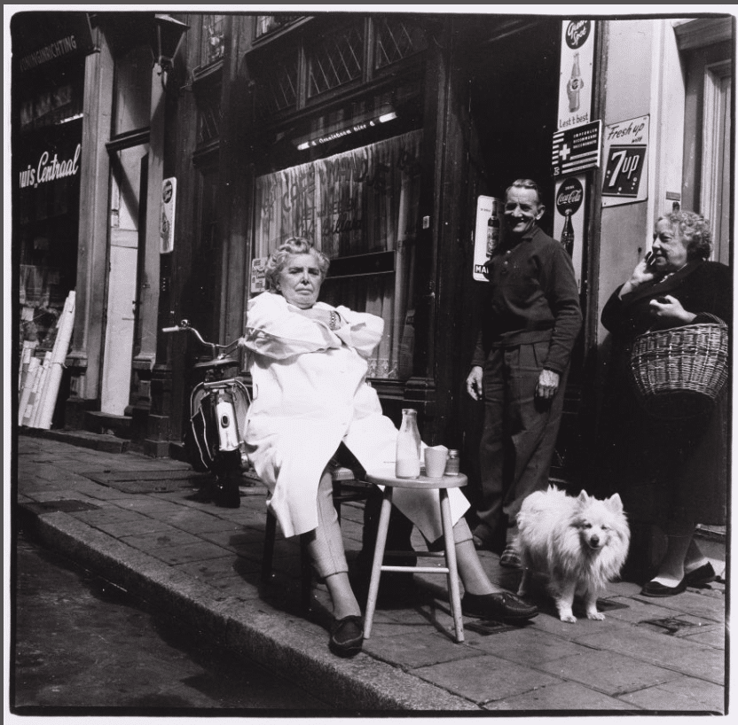 Bet van Beeren in front of her café, ’t Mandje on Zeedijk, traditionally a place of entertainment for those seeking experiences frowned upon by the “respectable” middle class.© Erven Sjoerd Holsbergen / Amsterdam City Archives