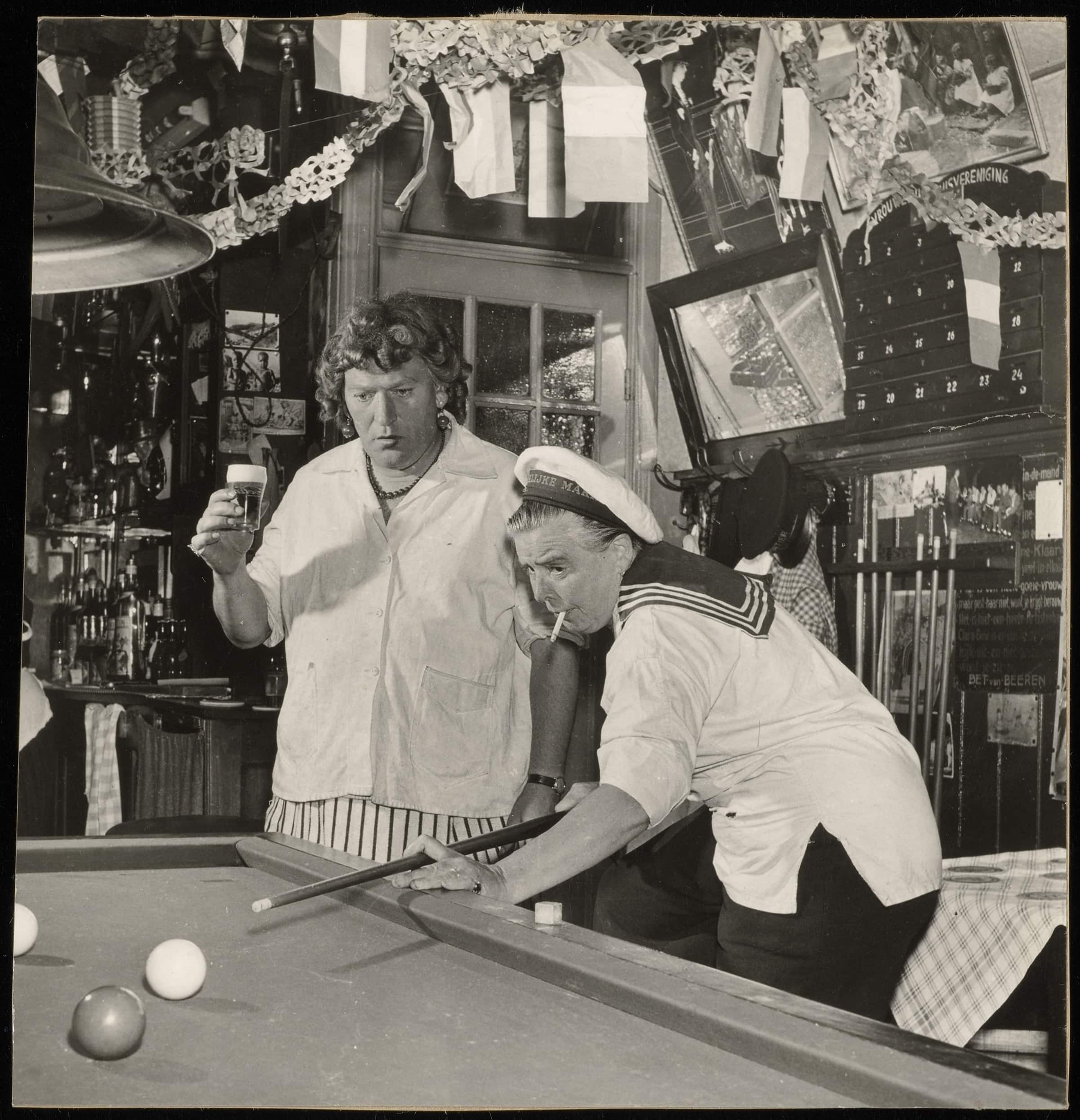 The café was styled like a traditional working-class brown café, much like those found in the working-class neighbourhood where the owner came from. The fact that this pub welcomed people from lower social classes is significant. The 1920s were a difficult time for Amsterdam, as the city was struggling with a severe housing shortage. This was particularly problematic for the working class. Large families often lived in small, often poorly built homes with few local amenities. A near-total lack of privacy was the norm for this segment of society. That lack of privacy, combined with strong social control and the prevailing stigma surrounding homosexuality, made it extremely difficult for men and women attracted to the same sex and living in these neighbourhoods to make connections or form relationships. They had to rely on public spaces, such as pubs.