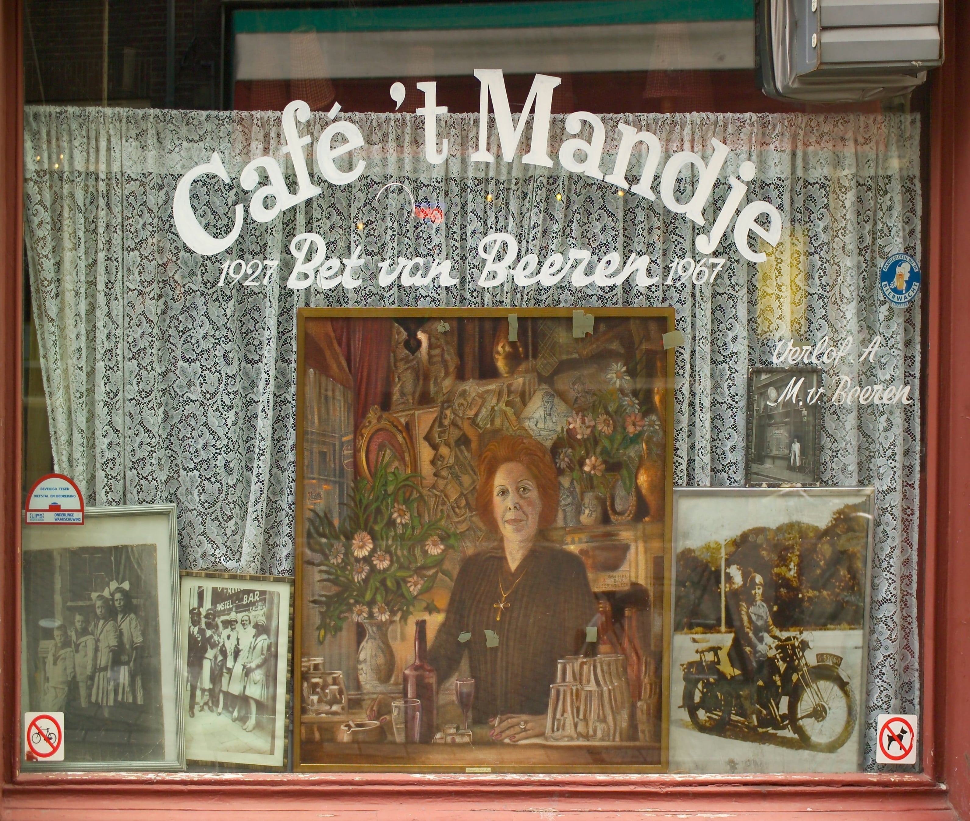 Towards the end of her life, Bet drank heavily – some say she downed as many as forty beers a day. She died in 1967 at the age of 65. Her body lay in state for two days in ’t Mandje, atop the billiard table. Her sister Greet took over the bar but was forced to close it in 1983 due to the ongoing nuisance caused by the heroin epidemic on Zeedijk.