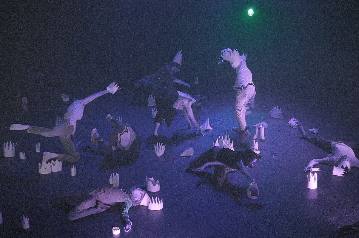 Enter Camping Sunset. The young company appears to have achieved a synthesis of the past decades. The young makers remind the reader of the joy of a large troupe on stage playing their hearts out. At the same time, they embrace the emancipation of the performer to maker, propagated by recent stage history. Their horizontal structure – just under twenty performers, artists, costumiers and production workers do everything in consultation, working without a director – is contemporary through and through. The same goes for the refusal to acquiesce to the programmers’ logic of a ready-to-go stage show. The desire to avoid repetition and perform differently every evening, too, can hardly be called traditional. This synthesis of old and new is a return to the core of what theatre embraces: performing together for an audience.