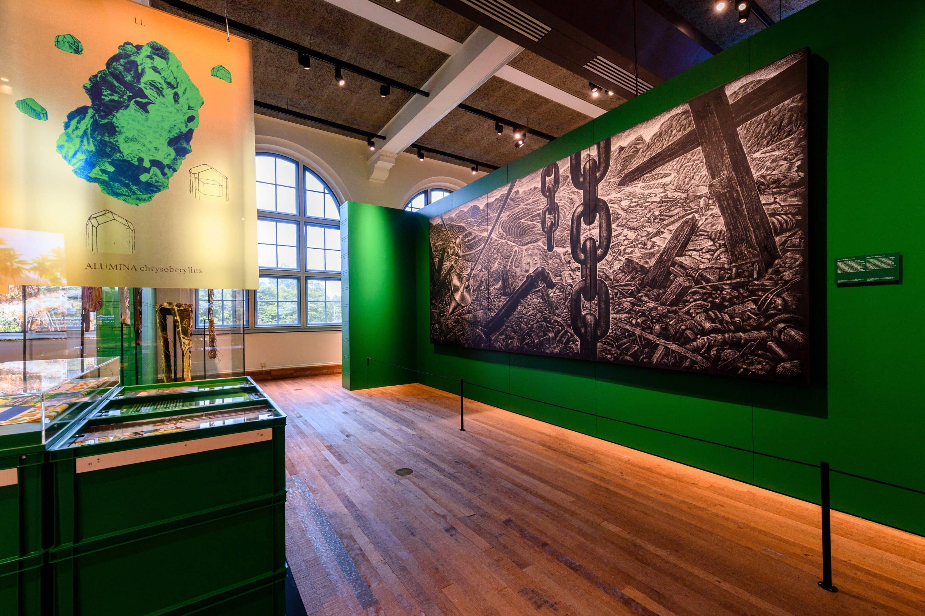 For another example of critical commentary on the collection, Modest points to a large black-and-white contemporary painting entitled Tales of the Gold Mountain (2012), depicting a ravaged, polluted mining landscape with chains and a cross. “With this work, Indonesian artist Maryanto draws our attention to mining and what extraction means. Some of the first objects in our collection were mineral samples. When you look at the beautiful objects in our museum, you should realise that the metal was extracted from somewhere, and that this still has an impact on the planet today.”