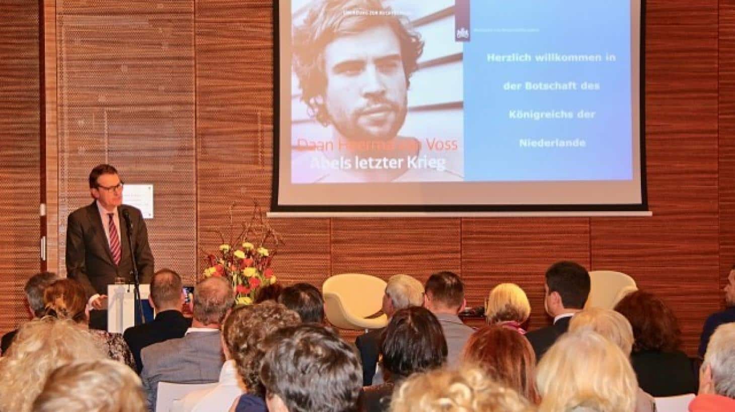 The Dutch Ambassador speaks at the 'Buchpremiere' of Daan Heerma van Voss at the Embassy of the Kingdom of the Netherlands in Berlin.© Embassy of the Kingdom of the Netherlands in Berlin