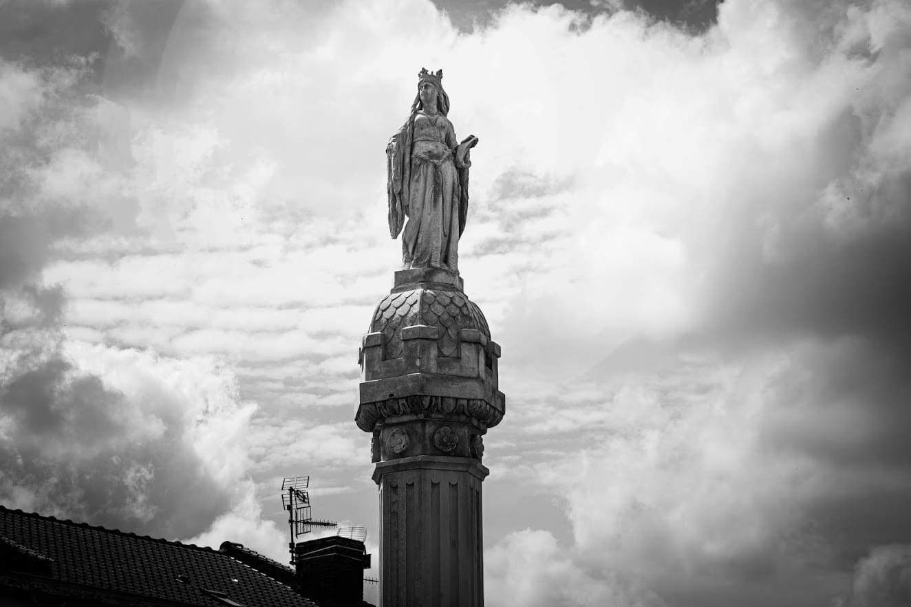 In the fields near Lesdain, ten kilometres past Tournai, stands the Pierre Brunehaut. A massive block of dark grey sandstone, the largest menhir in Belgium, 4,500 years old. It is a prehistoric trompe l’oeil: depending on the angle, it looks like an inverted guillotine blade, the Rocher Bayard