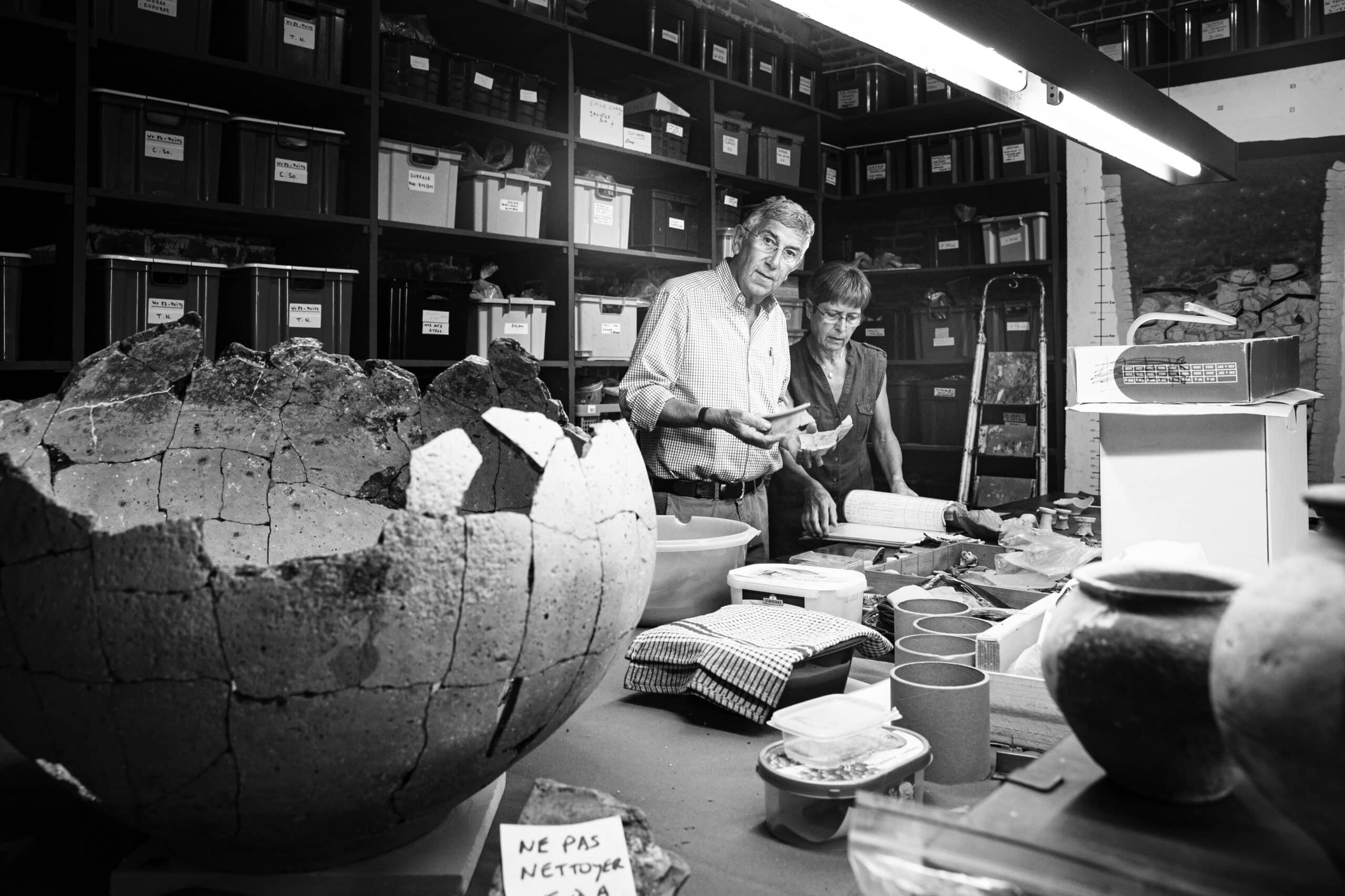 ‘Ah yes, the milestone,’ says Philippe Dekegel. ‘The municipal workers toke the stone to the museum of Mariemont. Even though it was found in our vicus.’ This typifies the passion for recognition that Dekegel has been chasing for fifty years. As the sole chairman of a non-profit organization – in amongst all the other provincial or regional museums with Roman collections – he emphasises time and again how everything in his Statio Romana has been scientifically substantiated. Dekegel was formerly an industrial design teacher, and he still practices his other job as a surveyor. He shows us his groma: a Roman surveying tool used in the construction of roads and buildings. This is a long staff with four horizontal arms placed perpendicularly to each other used to plot straight lines and right angles, and thus also define square and rectangular boundaries. It is due to this instrument that the Roman roads and architecture were so straight. Dekegel also shows us his chorobates, used by the Romans to measures gradients.