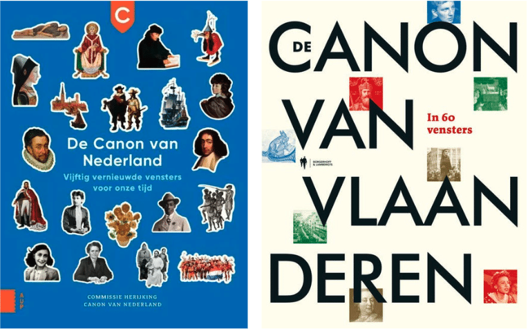 The book covers of the most recent Canon of the Netherlands (2020) and the Canon of Flanders (2023)Olla vogala