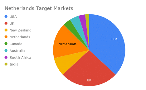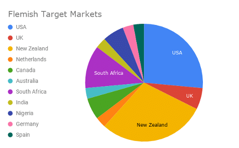 With Lemniscaat, Querido and Leopold responsible for the vast majority of Dutch-language translations travelling to the USA and the UK, these target markets are saturated by translations from large-scale Dutch publishers and are therefore all the more impermeable for the smaller-scale publishers based in Flanders. This can be seen in the charts below: While the large-scale Netherlands-based publishers send nearly 70% of their source texts abroad to the USA and UK, that percentage is significantly lower for Flemish publishers — 32,4%. Instead, Flanders initiates the export of Dutch-language children’s literature to a greater variety of smaller literary systems: Australia, Nigeria, Canada, South Africa, India, Germany, and Spain alongside the most common markets of the USA, the UK, the Netherlands, and New Zealand. Foregoing the practice of in-house translation altogether, Flemish publishers look further afield to build social capital among a selection of publishers that share their values in a more diverse selection of anglophone markets abroad.