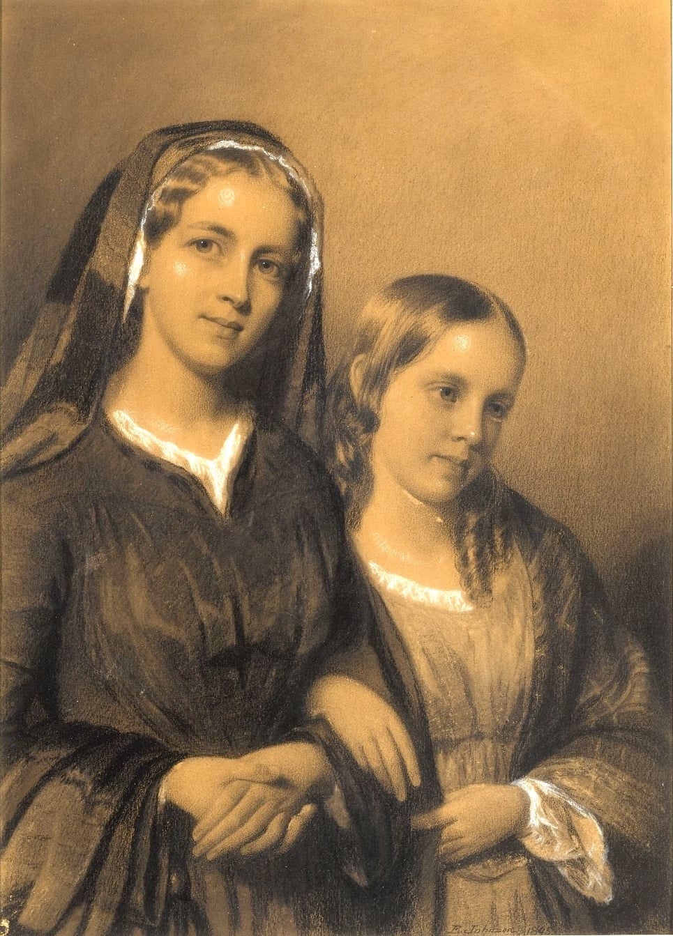 Johnson already was a successful portrait draftsman by the time he left for Europe. Growing up in rural Maine, he taught himself to draw. As a teenager, he worked briefly in a lithography shop in Boston, then returned home and began to make portraits. Likely introduced by his father Philip Carrigan Johnson, Secretary of State of Maine, he drew prominent citizens in Augusta; he also traveled the state to make portraits, including those of Stephen and Zilpah Longfellow, parents of poet Henry Wadsworth Longfellow. Johnson’s drawing of his sisters Judith and Harriet demonstrates the high level of skill he had attained on his own by the age of 21.