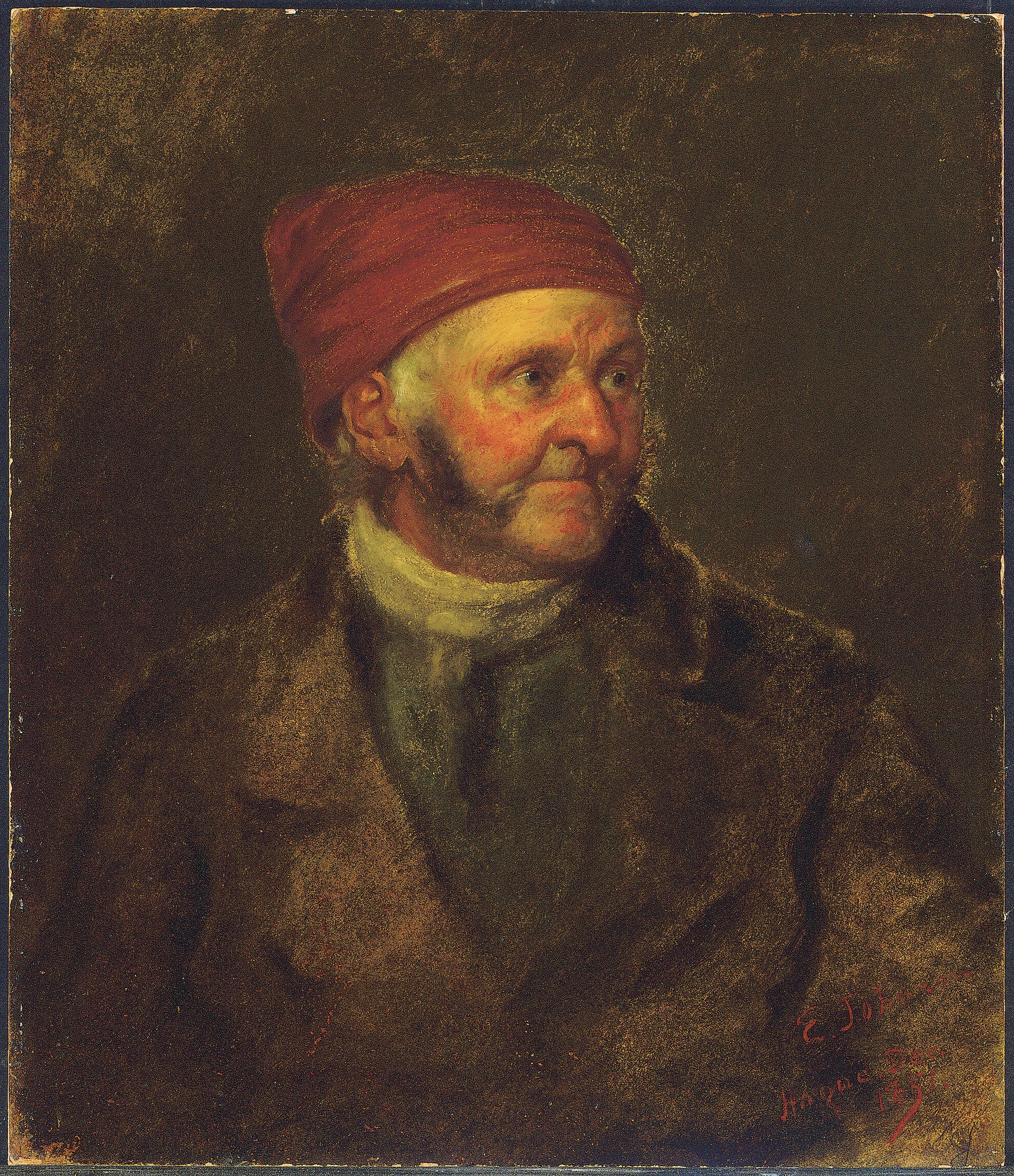 Johnson began to paint “types” in the spirit of Rembrandt’s tronies. An early example is his Old Waterloo Soldier, 1851.