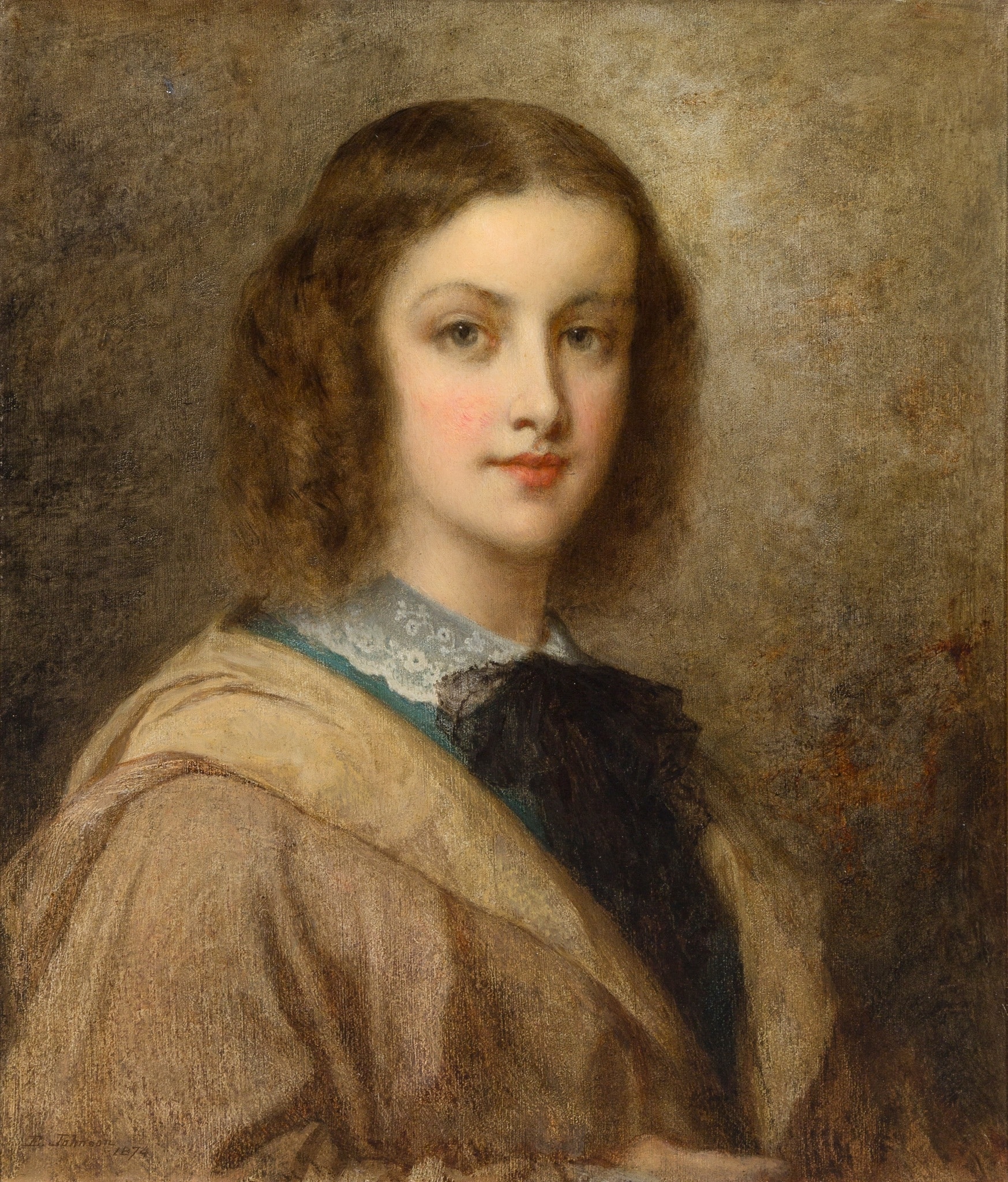At Mauritshuis Johnson would have seen Rembrandt’s self-portrait; he adopted the master’s practice of painting them throughout his lifetime. In his first dated self-portrait, 1853, Johnson presents himself with uncharacteristic drama in his new identity as a painter, looking forward seriously and directly, elegantly attired, holding his palette.
