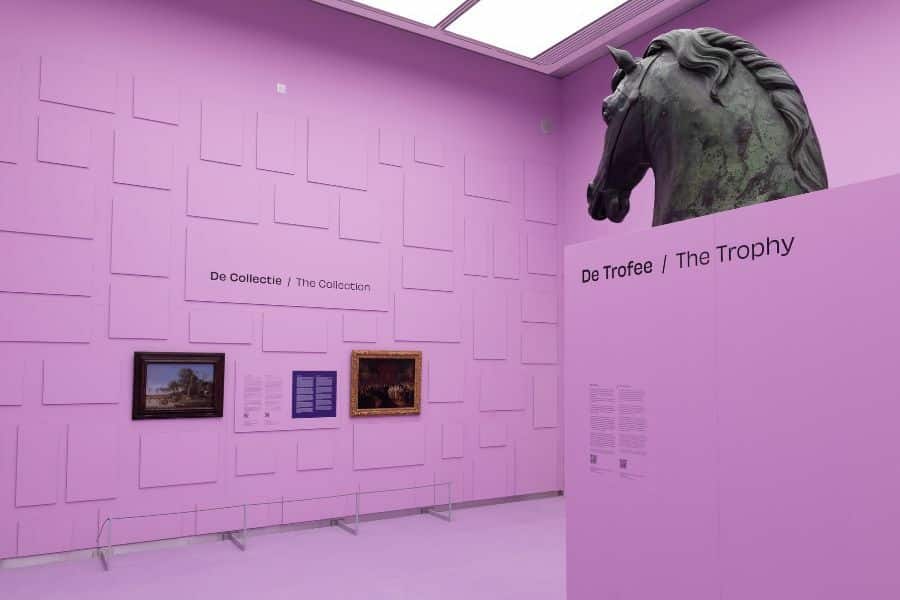 Through videos and three virtual reality experiences, as a visitor, you are immediately confronted with a number of stolen objects; QR codes on text panels provide a link to background information. And thus you end up in a pressure cooker in which you experience the stories of Cows Reflected in the Water by Paulus Potter; The Marriage of Friedrich Wilhelm, Elector of Brandenburg, to Louise of Orange in 1646 by Jan Mijtens; Jewish silver; a Self-Portrait by Rembrandt; the quadriga on the Brandenburg Gate in Berlin; a French commode; a Surinamese staff; the Benin Bronzes and a dagger from Bali.