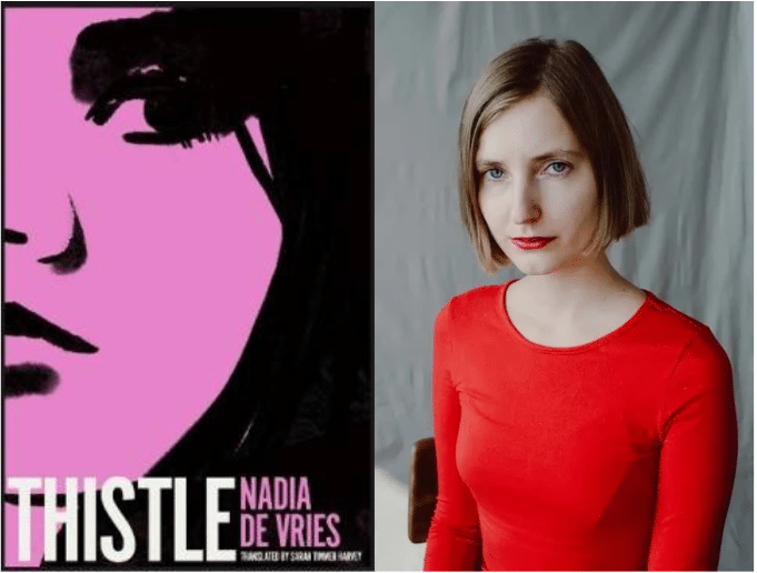 English-speaking readers may already be familiar with Dutch author Nadia de Vries, who has published three poetry collections in English, the latest of which is Know Thy Audience (Moist Books, 2023). Next month, however, the English translation of her debut novel Thistle (original title: De bakvis, 2022) will be published. Nadia chose not to translate it herself, but to work with Sarah Timmer Harvey, who has previously translated, among others, International Booker Prize nominee Jente Posthuma’s What I’d Rather Not Think About.