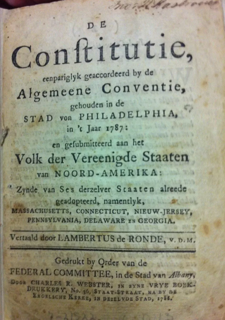 The first Dutch translation of the U.S. Constitution was almost entirely unknown and unexplored