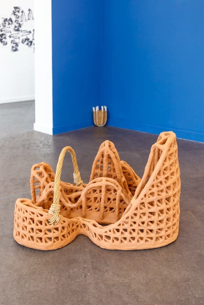 What is also important to Onis is that a reversal or shift takes place within an image. That a piece of art initially exudes danger, and only after that tenderness – or the other way round. A good example is Going to Hell in a Hand Basket (2021), which looks like a ceramic roller coaster. Onis describes this medium as a permanent state of deceleration. The fact that the object also has a traditionally woven wicker handle leads to another shift: suddenly all that rattling excess becomes something compact that you could carry with you.
