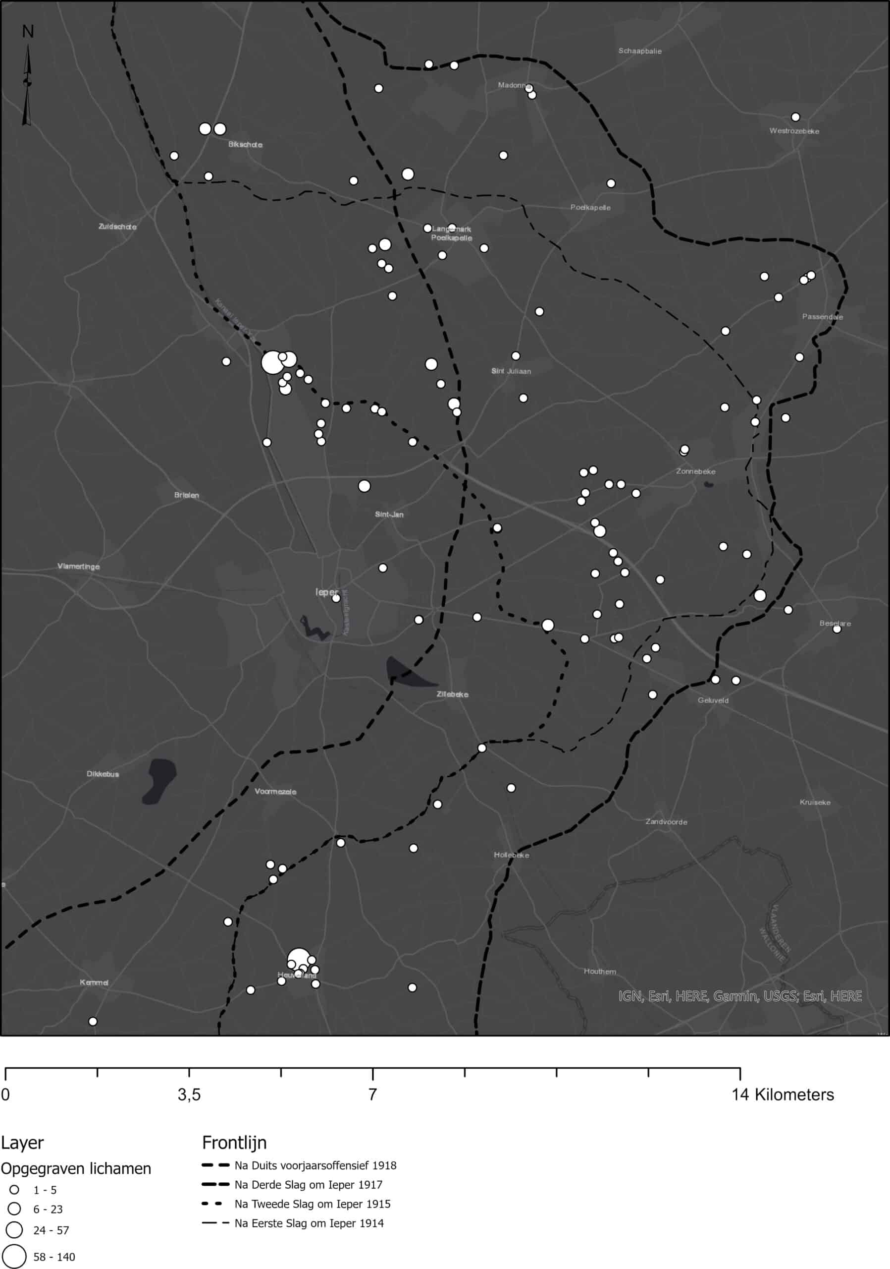 Distribution map showing bodies excavated in the WesthoekIdentification