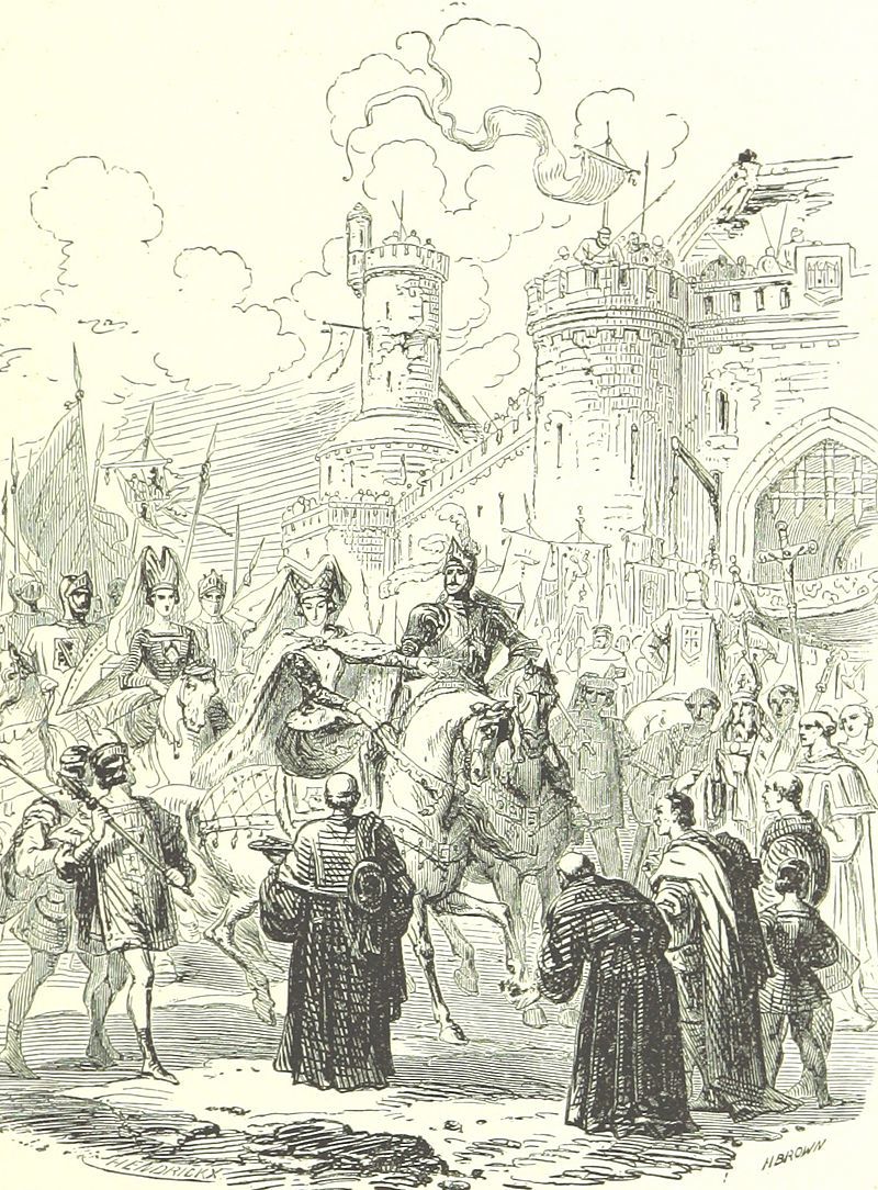 Entry into Mons of Jacoba, Countess of Hainaut and her new husband Humphrey of Lancaster, 1st Duke of Gloucester, Image taken from Illustrated History of Belgium, 1885© Wikipedia