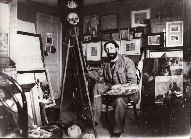 He studied at the Royal Academy of Fine Art in Brussels. On winter evenings he visited the left-liberal Ernest Rousseau and his wife Mariette, with whom shy Ensor was secretly in love. He came into contact with other intellectuals, lovers of art, freemasons and nobility. However, he only achieved measured results at the Royal Academy. People called him the Grim Reaper because he dressed in black and was tall and slender.