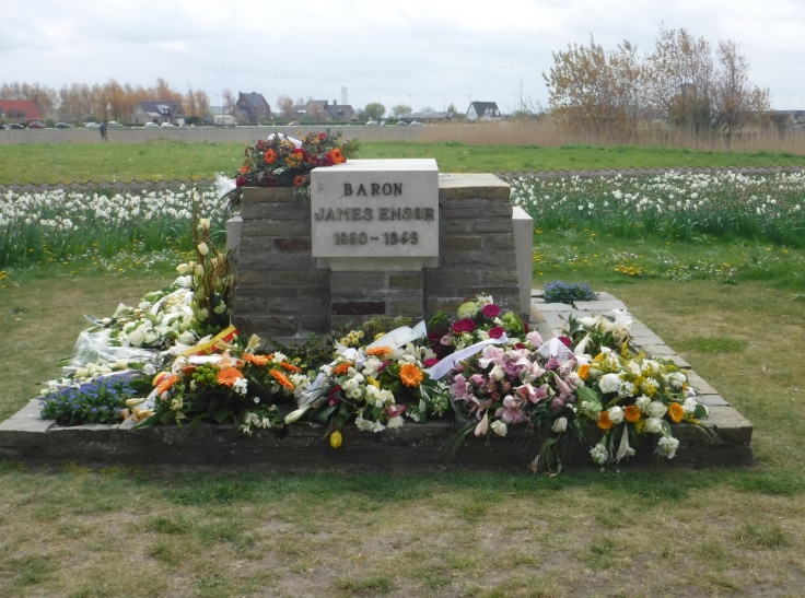 Tomb of James Ensor; Onze-Lieve-Vrouw-ter-Duinenkerk, Ostend‘There are no longer any privately owned Ensor paintings in Ostend’, says Tricot. Only stories and the ghost of Ensor, busy destroying itself. More than ten years ago the letters BARON were stolen from his grave, an anarchistic stunt carried out by De Stoete Ostendenoare (The Fearless Ostenders). The letters have since been stuck back on. Soon a spacious, residential tower block with 26 floors will be erected on the Oosteroever. The name: Ensor Tower. Ensor was avant-garde and at the same time mercantile and opportunistic because money had to be made. After all, everyone wants money.