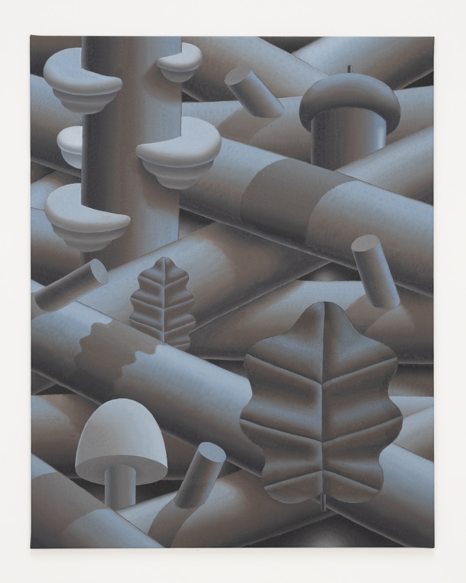 His latest show, at Gallery Vacancy in Shanghai, contains new work that expands on past obsessions. The crepuscular forest continues to fascinate him, with fallen leaves now draped limply over the fallen branches, in a way that is at once natural and suggestive of Dali’s melting clocks. Legiers’ world feels so rigid that any softness comes as a surprise.