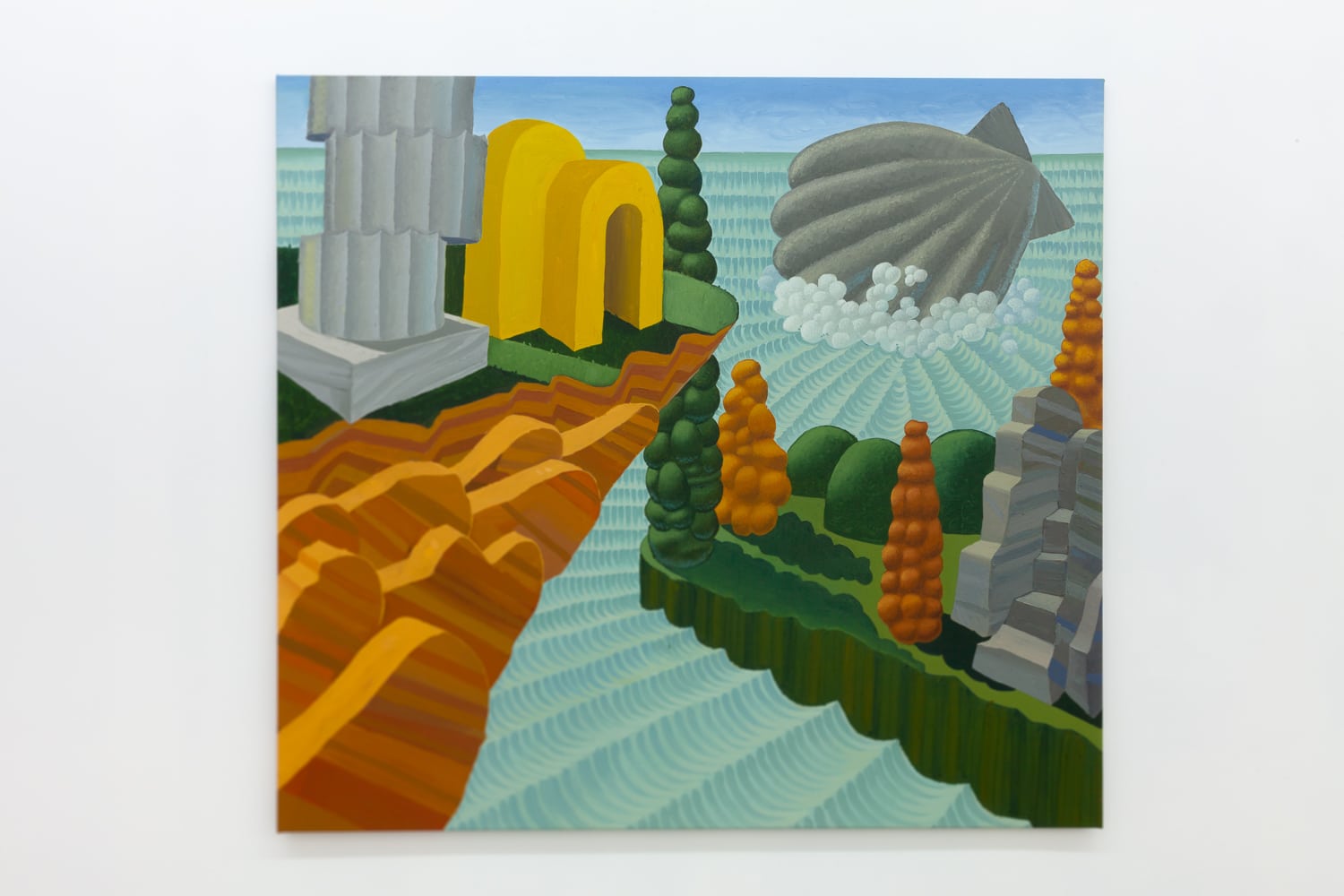 Laurens LegiersBut his distinctive style was not apparent when he graduated in 2018 from the Royal Academy of Fine Arts in Antwerp, his home town. At this point, his paintings were inspired by Greek and Roman culture and myth. They feature vertiginous, brightly coloured landscapes scattered with broken columns, arches, and cypress trees. Characters from the myths are represented by prominent symbols: a half-shell rising from foam for Venus (via Botticelli), untended fires for Prometheus.