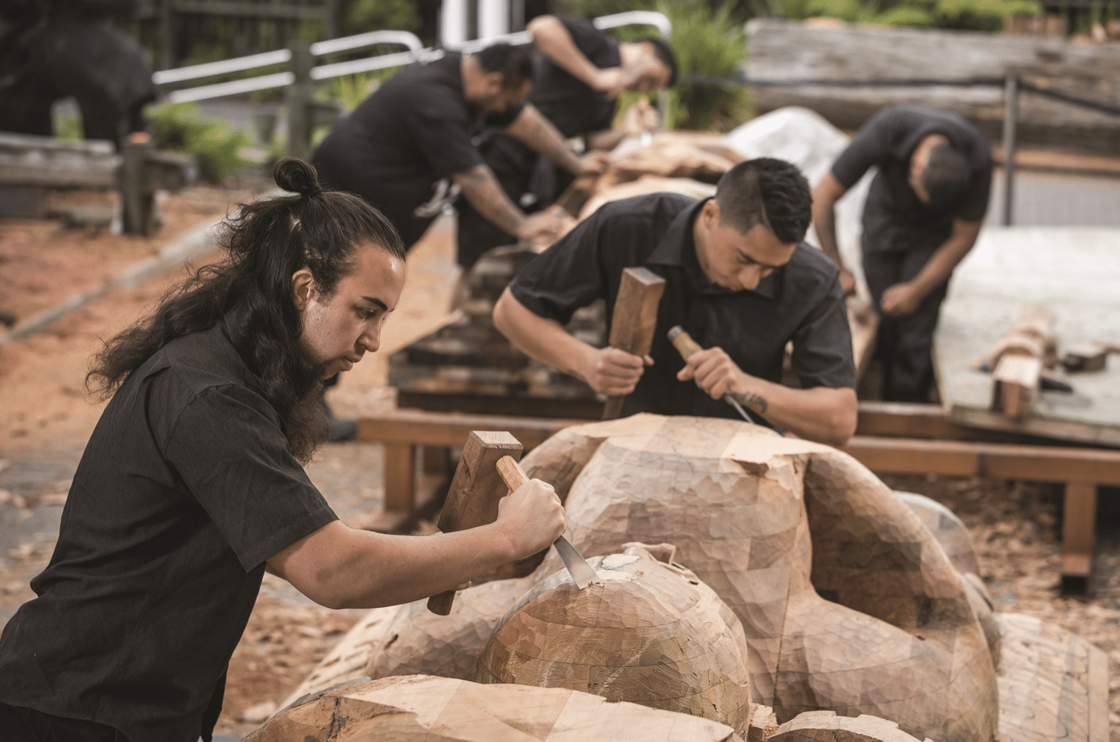 The pou maumahara (memorial carving) was created from 4,500-year-old native New Zealand timber by master carvers, tutors and students from the New Zealand Māori Arts and Crafts Institute (NZMACI) in Rotorua, New Zealand. It took them four years to do the job.