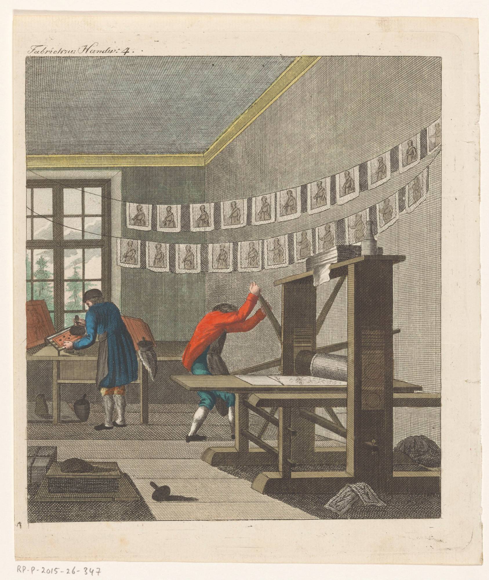 Interior of a printing house, c. 1750In the fifteenth century, the invention of the printing press turned the world of translation upside down. This innovation coincides with the blossoming of humanism and of various sciences and with the growing interest in the original Bible texts in the Biblical languages; Latin, Greek, Hebrew, and even Aramaic and Syriac. This means a lot is being translated into and out of different languages, including the vernacular languages, which will have less regional variation. After all, the more uniform the language, the larger the potential audience. Translation, especially of religious texts, had become a lucrative business. In this chapter, we are introduced to Vincentius Meusevoets and Johannes Lamotius, who translated around seventy titles between 1598 and 1628. They mainly translated from English, a language that was in great demand at that time.