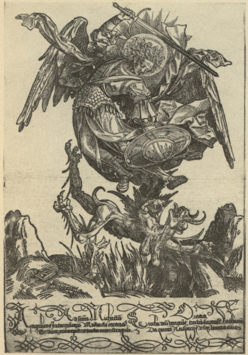 Jacob Cornelisz, St Michael, from the series Holy Knights, 1510Jacob specialized in so-called monumental or giant woodcuts, which consist of several sheets printed from several woodblocks and were mounted together so as to make a huge frieze or rectangular ensemble. Most of his monumental woodcuts were intended for religious instruction or devotional purposes. Such print series were primarily intended to be hung on walls in monasteries, chapels, public buildings, schools, and the houses of wealthy private individuals. As a result of this intensive use many of them were damaged in the course of time and survive only as fragments, if that. Our picture of Jacob Cornelisz’s print oeuvre is therefore incomplete and less well-defined than that of Albrecht Dürer and Lucas van Leyden, who usually made smaller engravings and woodcuts.