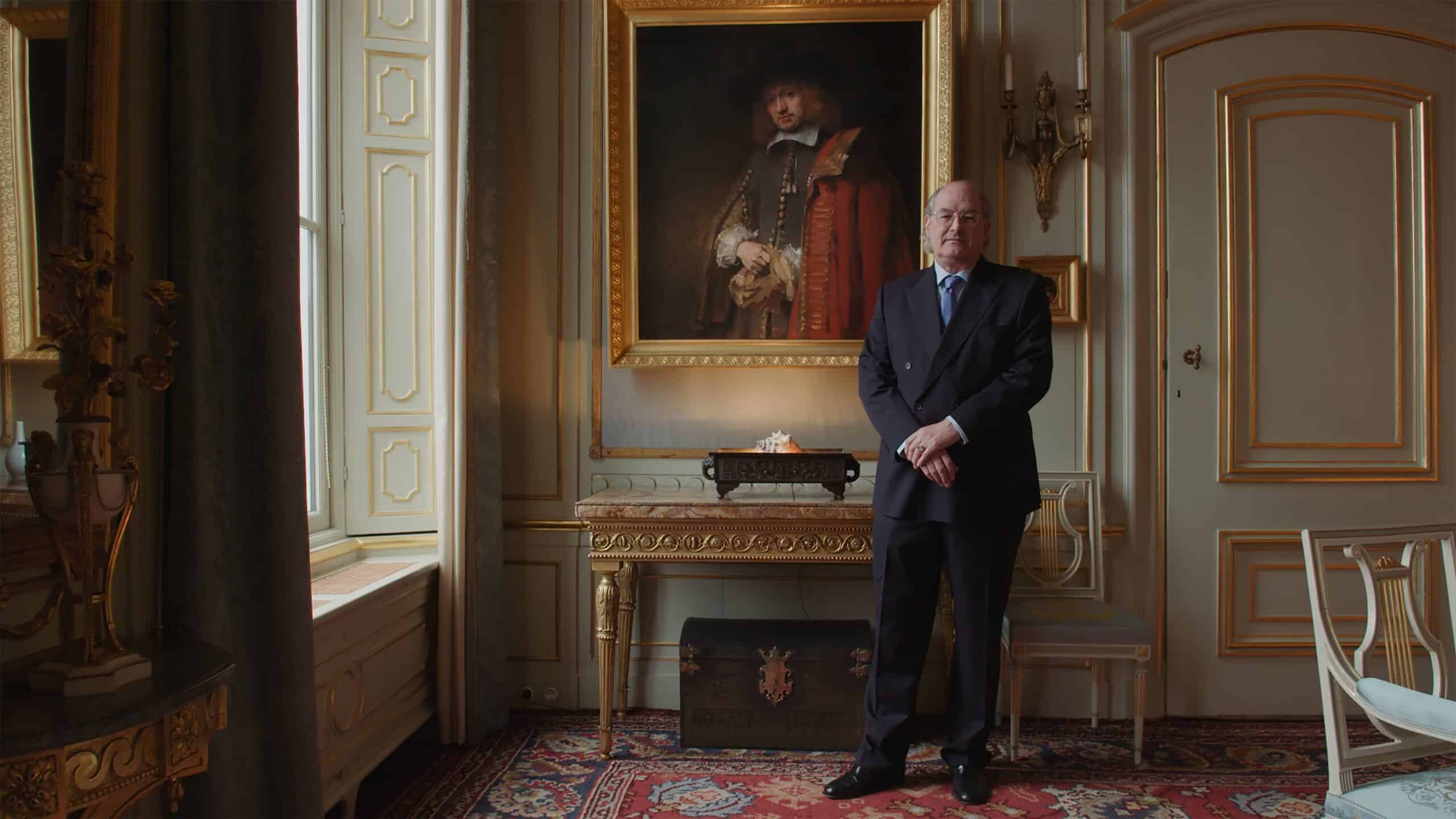 Jan Six X in front of the painting of his forefather, Jan Six I.Still from the documentary 'My Rembrandt'