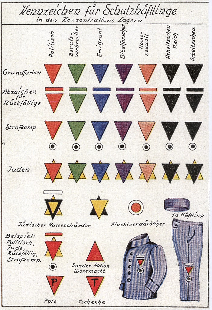 In 1972, under the pseudonym Heinz Heger, the Austrian Josef Kohout wrote about his experience as a gay man at Camp Dachau: Die Männer mit dem rosa Winkel (The Men with the Pink Triangle). His memoirs ensured that a wide audience became acquainted with the persecution of gays by the Nazis, and with the pink triangle. That image became even more popular thanks to the play Bent (1979) and later a film (1997) by the American gay and Jewish author, Martin Sherman, inspired by Kohout’s story. For gay movements, the pink triangle became a means of demanding political reform. They were unacknowledged victims of the Nazi horrors.