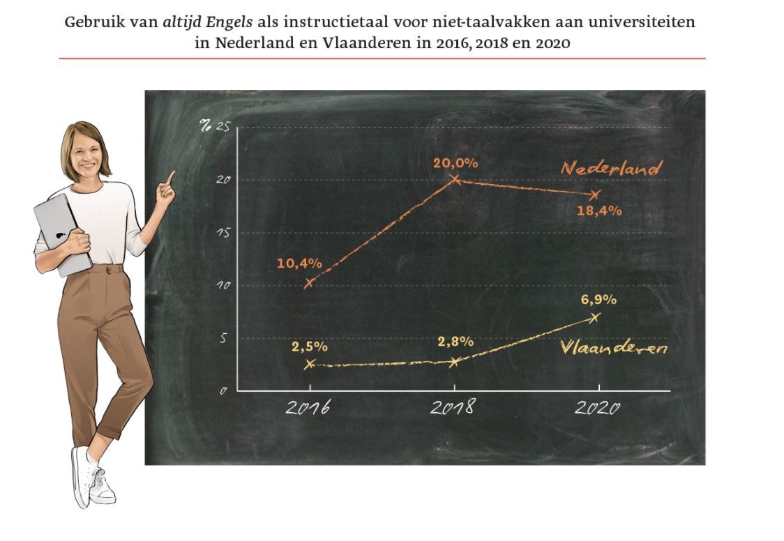 In higher education in the Netherlands, English is used the most – either alongside or instead of Dutch, although the use of Dutch seems to be stagnating to a degree. Meanwhile, in Flanders, the use of Dutch is on the rise.