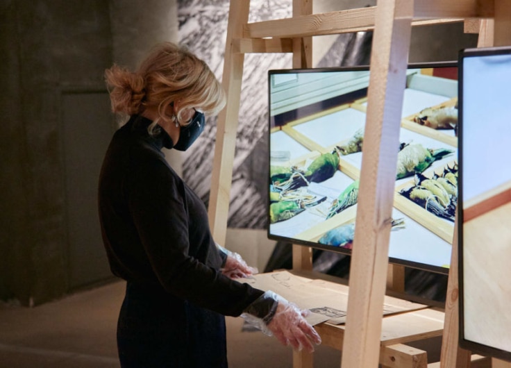 Similarly desolate is the sculpture Folly (2017) by Anouk Kruithof (1981). In her multimedia work this artist, who was born in the Netherlands and works internationally, focuses a great deal of attention on the relationship between humans and nature; specifically on pollution. Folly resembles a lump of inorganic material, partly covered as if the figure is hiding, with prosthetic legs on either side. Above all, these implements and their trendy gold trainers scream “human!”, whereas there is something animalistic about the legs’ horizontal shape and crab-like position. This is no longer a sculpture for the Atomic Age but for the age of climate change. Of course, it’s fantastic that prostheses exist, but in this case, they also contribute to pollution and to the post-apocalyptic look of the sculpture.